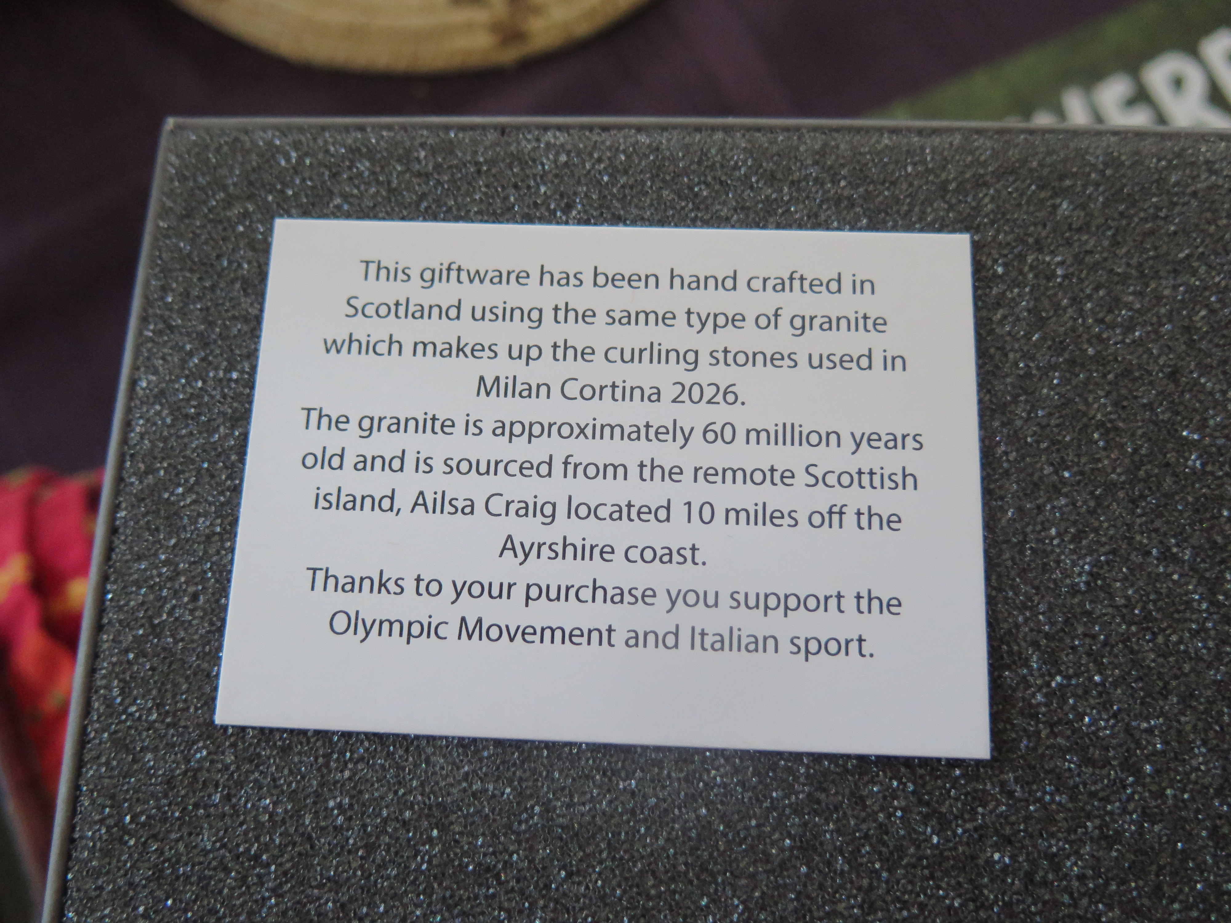NOTE: THIS GIFTWARE HAS NOT BEEN MADE FROM THE ACTUAL STONES USED AT MILANO CORTINA 2026. The granite is approximately 60 million years old and is sourced from the remote