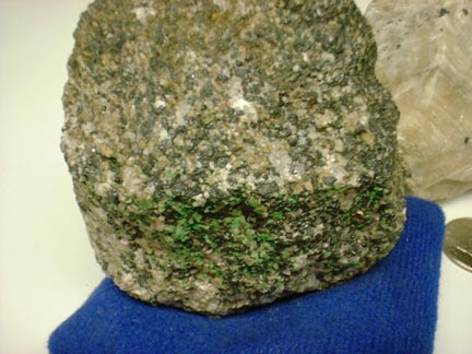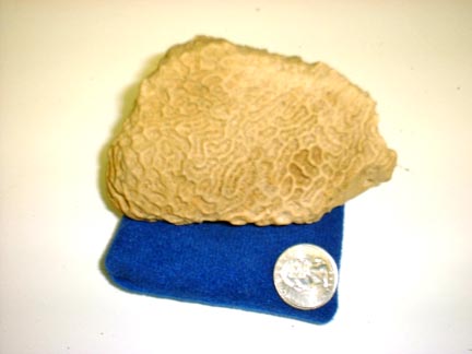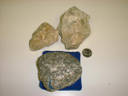 This picture shows the three specimens in normal light and includes a quarter to give scale |