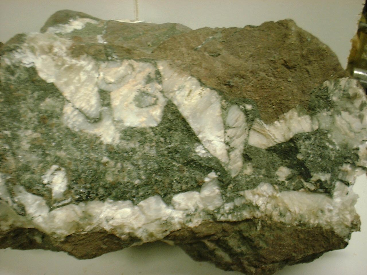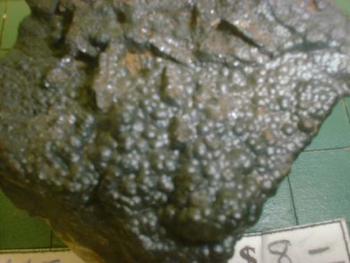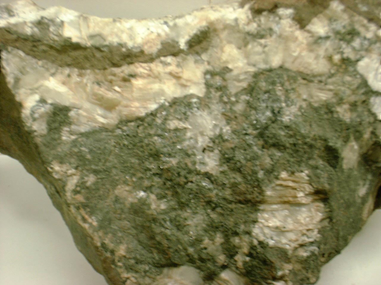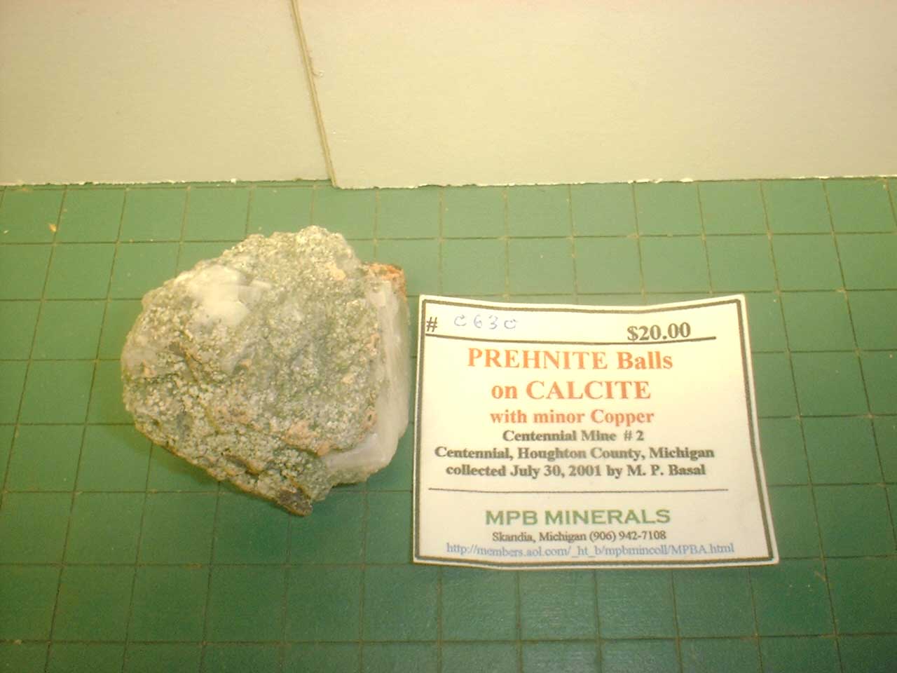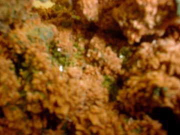 Much of the Malachite appears too dark and hard and may be some other unidentified green mineral, but some surfaces show ideal botroydal malachite edges (with needles -- surface still in calcite). |