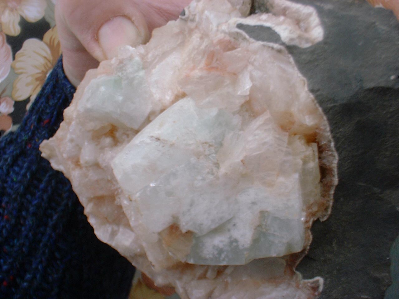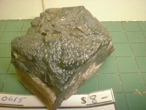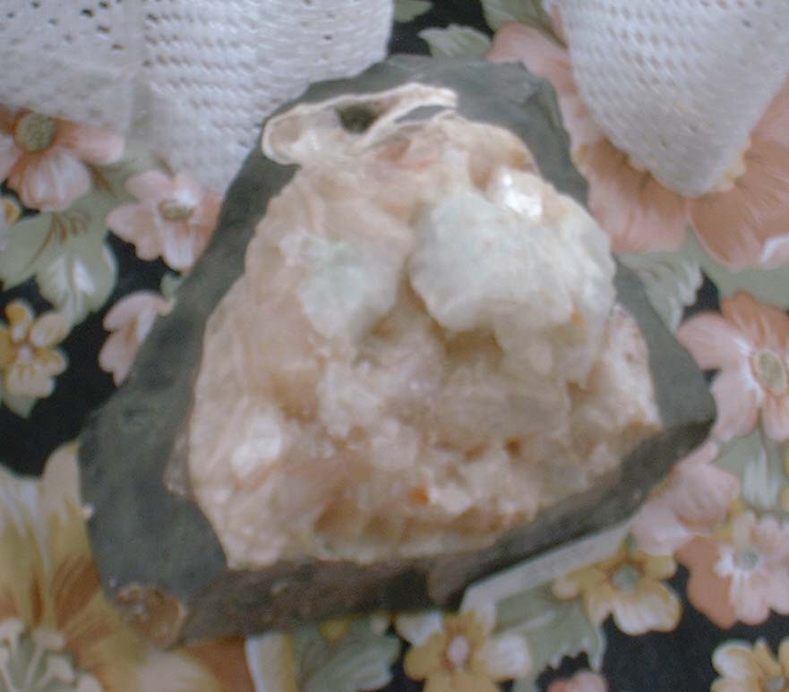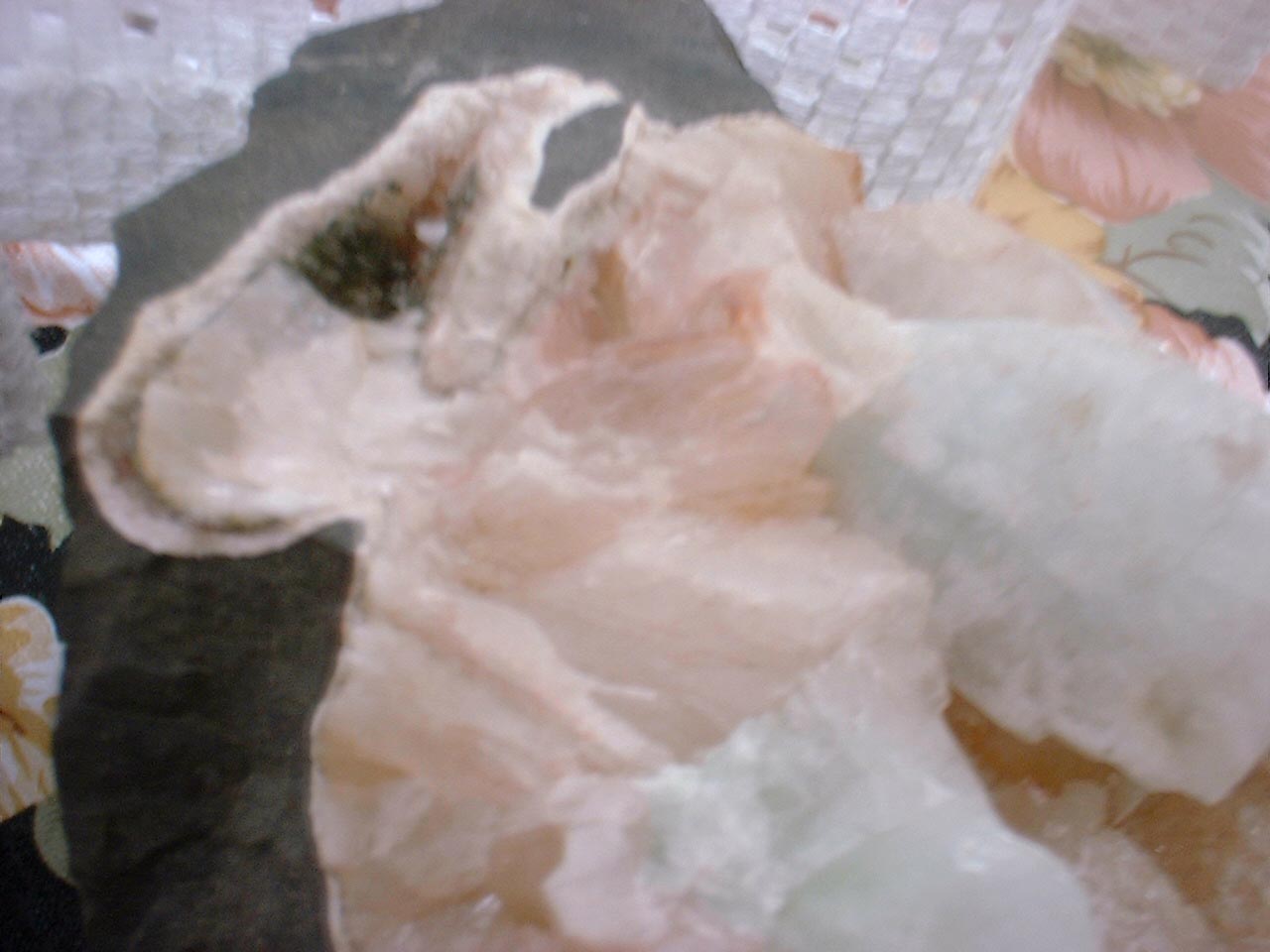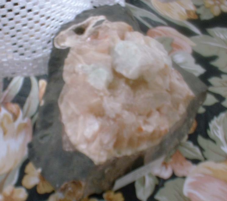 Much of the Malachite appears too dark and hard and may be some other unidentified green mineral, but some surfaces show ideal botroydal malachite edges (with needles -- surface still in calcite). |