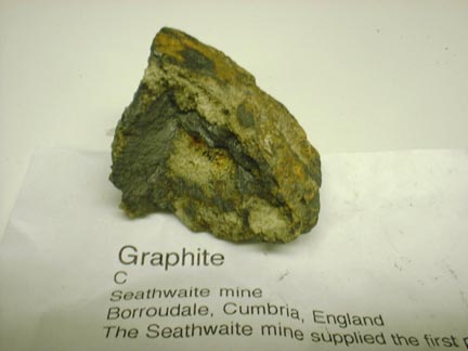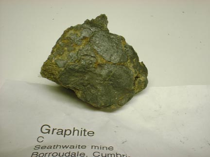 The Seathwaite mine supplied the first ever pencil factory in Keswick, England. It was named from the Greek verb graphein meaning to write by Abraham Gottlob Werner in 1789. |