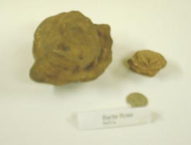 Barite was named from the Greek word baros meaning weight or heavy by Dietrich Ludwig Gustav Karsten in 1800. Rose since the sand crystal takes a shape like that flower. |