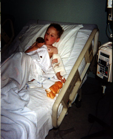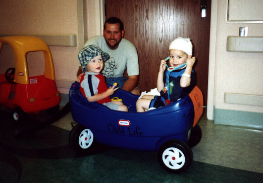 Here I am with Grant and Daddy. My head was bandaged because I was