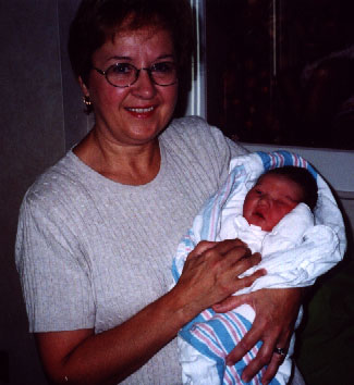 Here's a great picture of Brandon being held by Grandma Pries.
