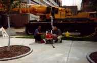 Daddy and I noticed a crane working behind the hospital one day.