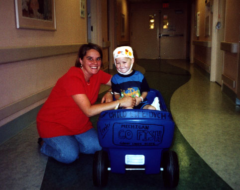 After my second surgery I enjoyed riding in this blue wagon.