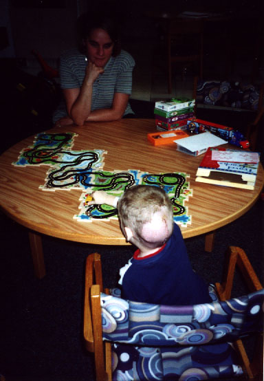 Here I am with Mommy, playing a game at the Mary Free Bed Hospital.
