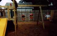 Grant and I are swinging with our neighbor Grace in our backyard.